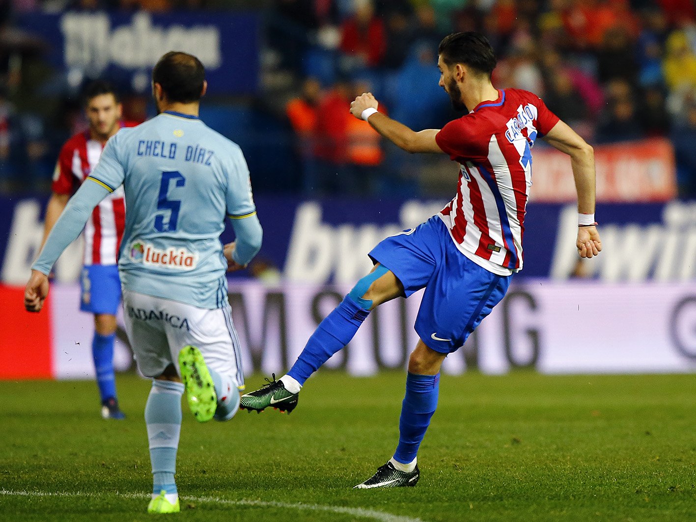 O Celta de Vigo fez o segundo gol aos 78 minutos de jogo, contudo, uma rápida reação colchonera para empatar o jogo. Num chute de raríssima felicidade, um voleio de fora da área de Carrasco, alcançaram o empato aos 86 min. Já as 88 ( 43 do segundo tempo) Gameiro escorou de cabeça para um Vicente Calderón e Simeone enlouquecerem com a ' remontada' dos rojiblancos.