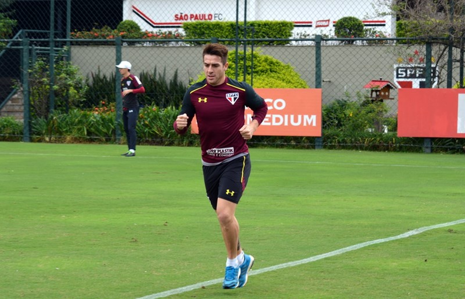 | Buffarini corre no gramado pela primeira vez após lesão (Foto: Érico Leonan / saopaulofc.net) |